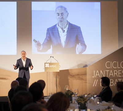 O presidente executivo da Vodafone Portugal, com o tema "o sector das comunicações depois da troika" abordou a situação atual do mercado e os seus principais desafios. Numa altura em que vivemos "momentos muito desafiantes em Portugal, na Europa e no Mundo", apesar do nosso País se distinguir "por uma relativa paz social e por um consenso político minimamente abrangente", sobre a Europa "pairam nuvens de desgoverno e de enorme incerteza que ameaçam as nossas perspetivas de recuperação", como referiu o presidente da APDC na apresentação do orador-convidado desde Ciclo, patrocinado pela CBE, Huawei e Logica.